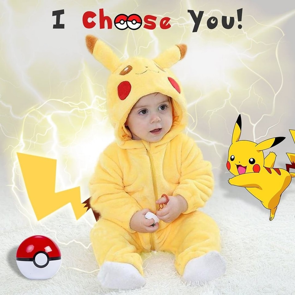 Complete with cute Pikachu ears and a tail detail 🐭⚡, this jumpsuit brings the fun of the Pokémon world to life. Whether you're at home, out for a stroll, or attending a Pokémon-themed event, your little Pikachu will steal the show!