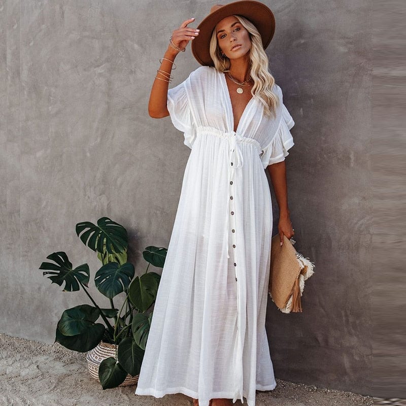 Breathable Maternity Beach Dress: The dress is made from lightweight and breathable fabric, perfect for the summer season or beach outings. It is designed to accommodate the changing shape of a pregnant woman's body, providing ample room for the growing baby bump. The fabric is often stretchy and soft, ensuring a comfortable fit.